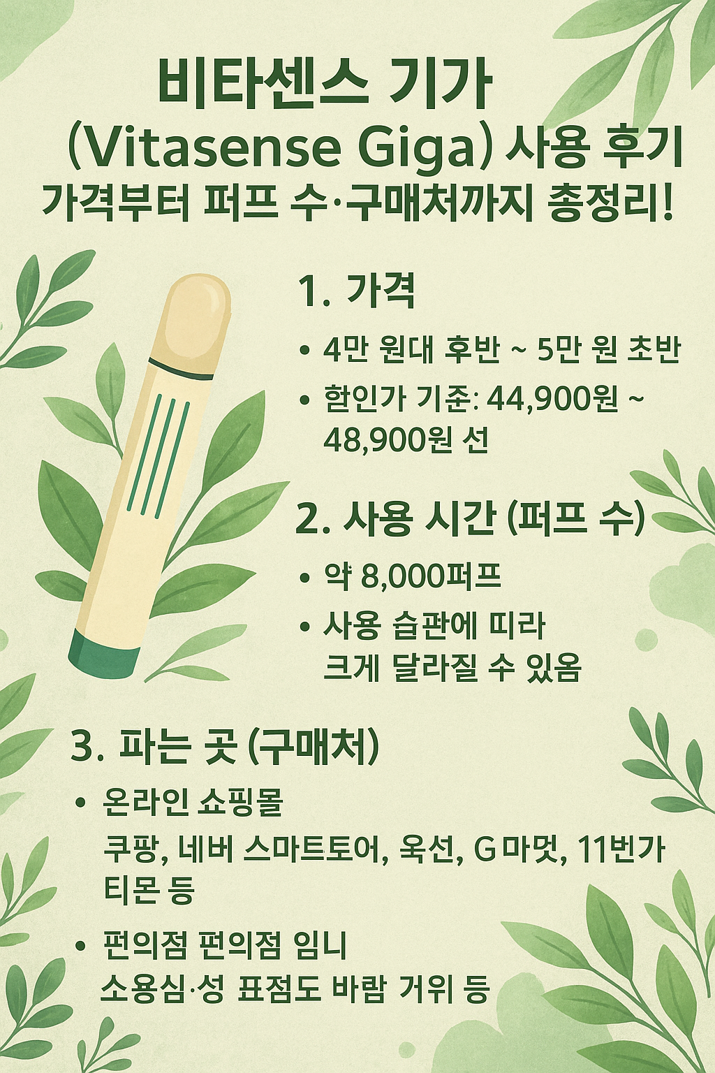 비타센스 기가(Vitasense Giga) 사용 후기💨 가격부터 퍼프 수·구매처까지 총정리!
